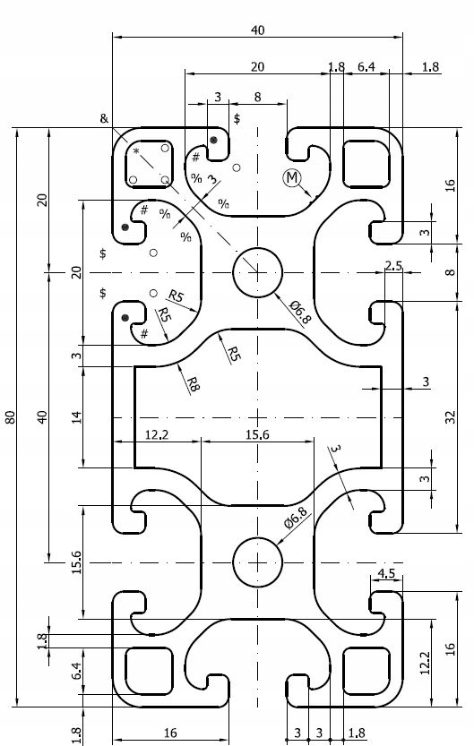 ALUMINIUM CONSTRUCTION PROFILE 40X80 T8 -100 CM