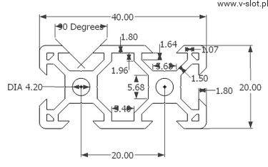 The profile has a specially designed V-shaped groove on 4 sides. V-Slot 20x40 profiles are fully covered with a special coating (anode) which guarantees protection of the structure against external factors. Scratches do not damage the profiles.