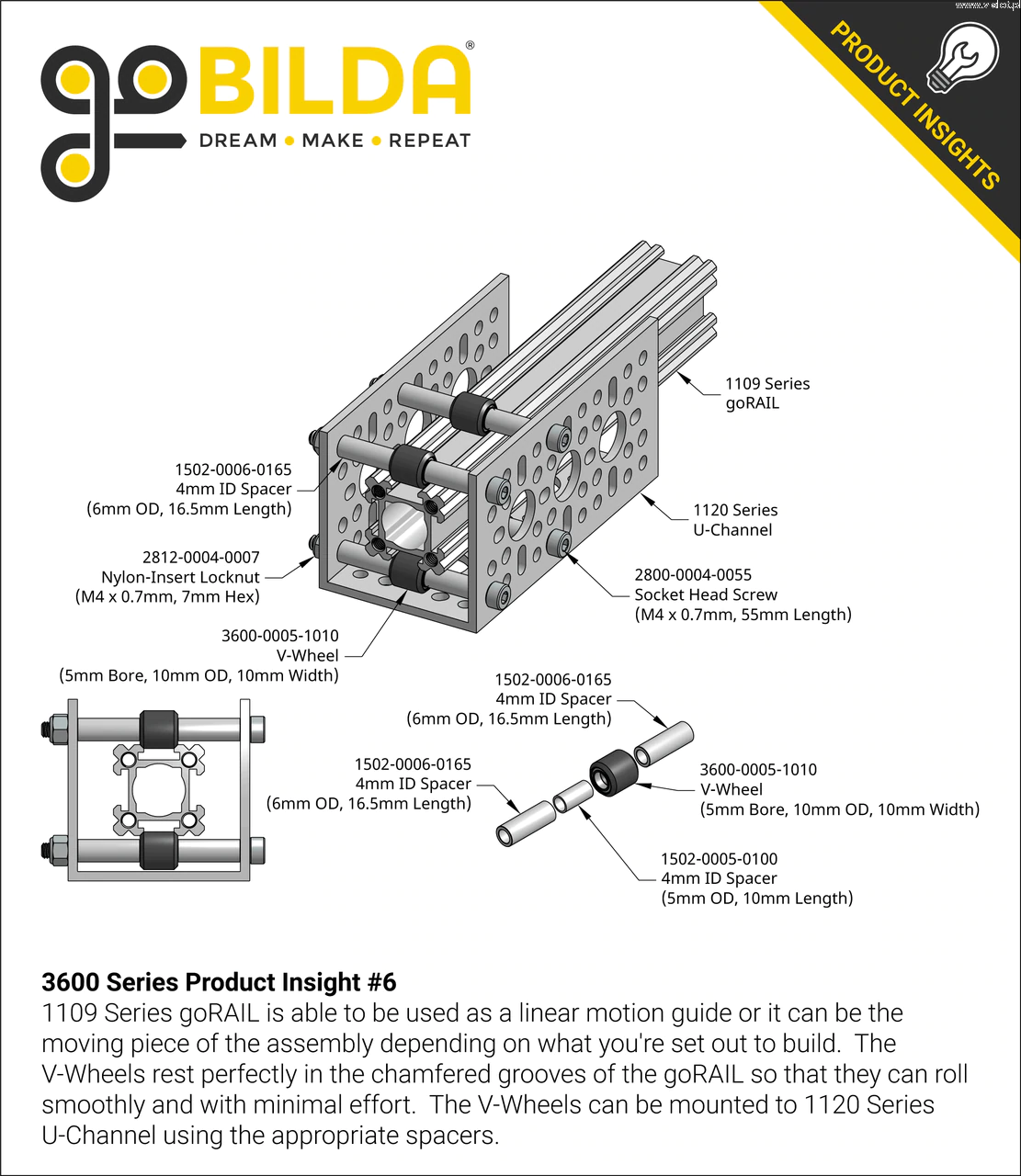 V-Wheels have beveled edges. It is an excellent support mechanism to ensure a smooth configuration of linear motion.
