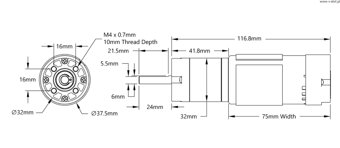 - Output shaft: 6mm (D)