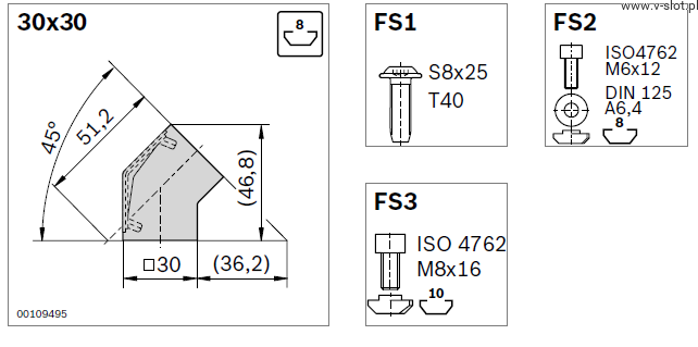 Angular connector 45 degrees 30x30 Set Bosch Rexroth