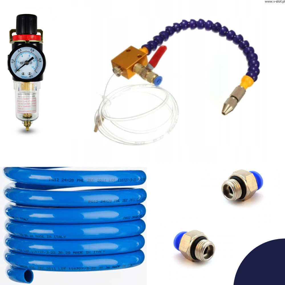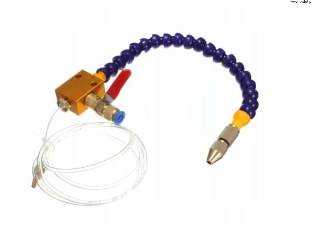 The CNC oil nozzle kit allows you to expand the LEAD CNC milling machines and many others with an oil nozzle with a hose and a valve. The solution enables cooling with both air and oil mist (air + liquid). The set includes additional accessories that facilitate the installation of the system.