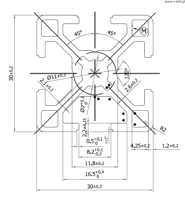 Aluminum Profile of construction of V-Slot Polska with a dimension of 30x30mm, groove 8.
