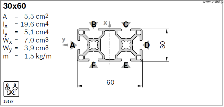 Construction aluminum profile 30x60 T8 Bosch Rexroth