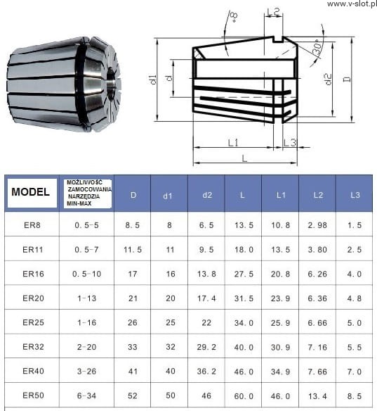 ER11 Collet with ø 3.175 mm 1/8-inch DIN6499