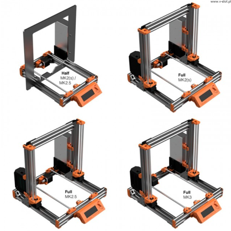 The kit is an aluminum frame conversion for Prusa i3 MK2, MK2s, MK2.5 and MK3. Another Modification of the Prusa i3 frame allows the use of as many original parts as possible. The kit is compatible with MK2, MK2s, MK2.5, MK3. The frame is very easy to assemble - the kit includes all the necessary profiles, corners, connection plates and screws!