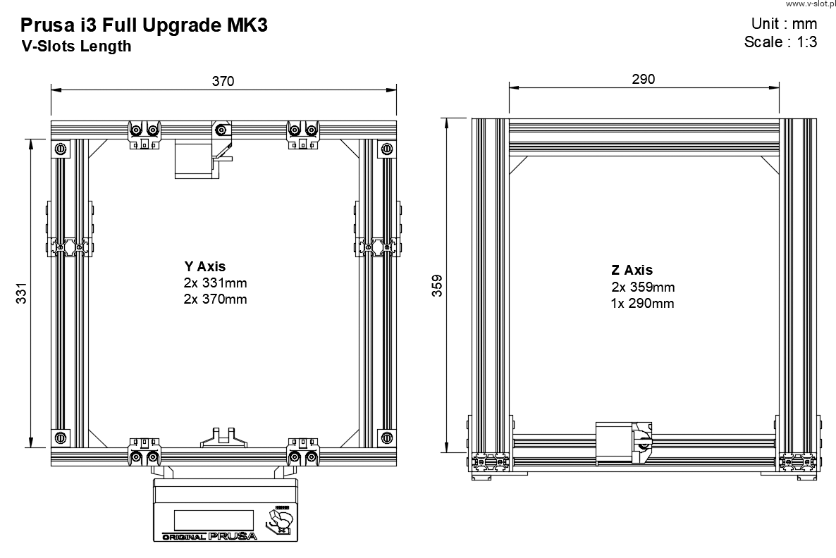 Full Bear Upgrade Prusa i3 MK3 - A set of aluminum V-SLOT 2040 profiles and accessories