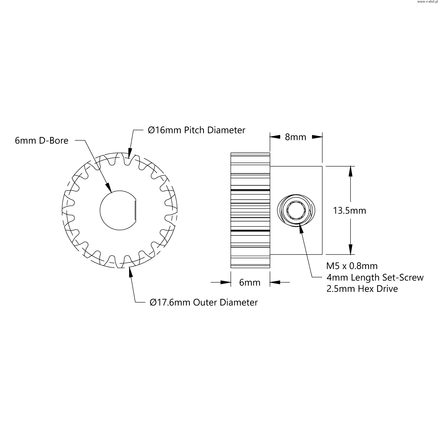 Gear wheel 2303 series ( hole D 6mm, 20 teeth)