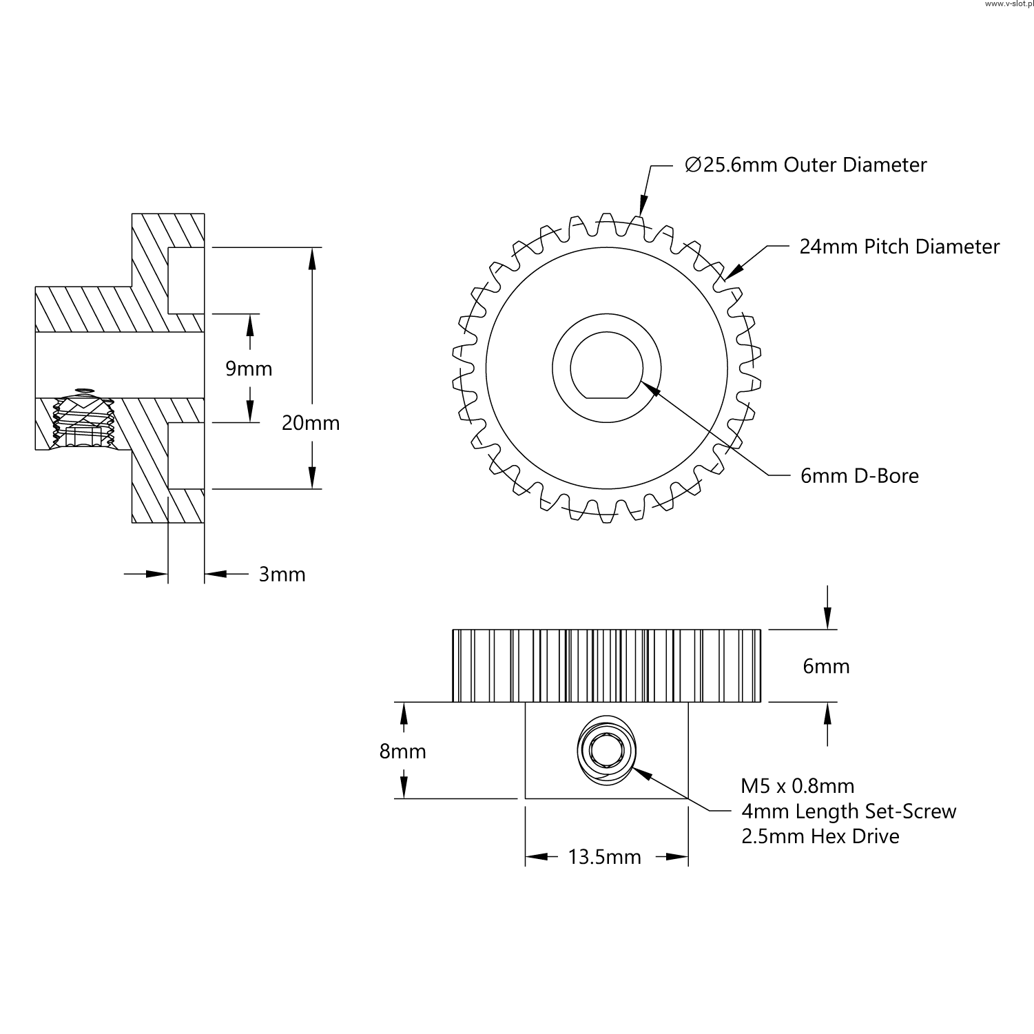 Gear wheel 2303 series ( hole D 6mm, 30 teeth)