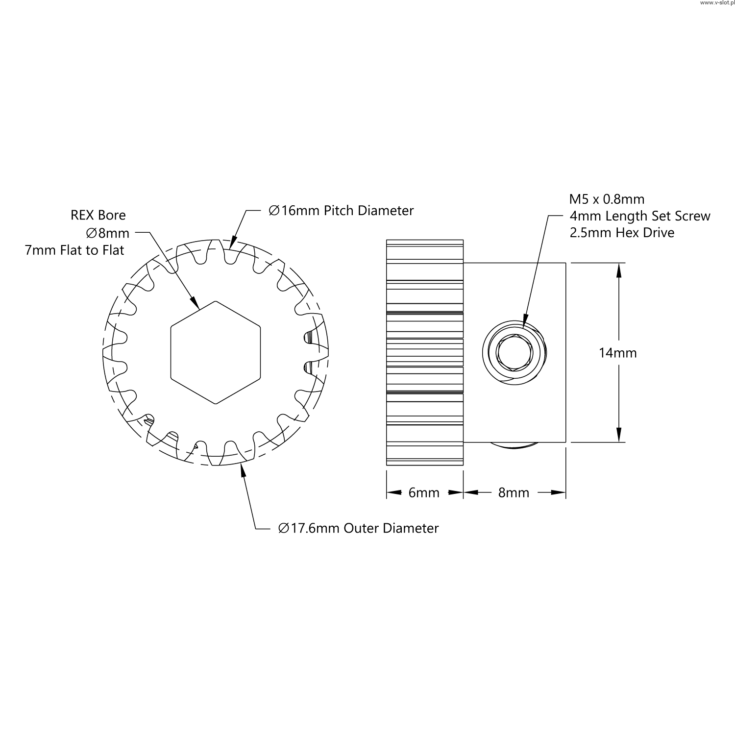 Gear wheel 2303 series ( hole REX 8mm, 20 teeth)