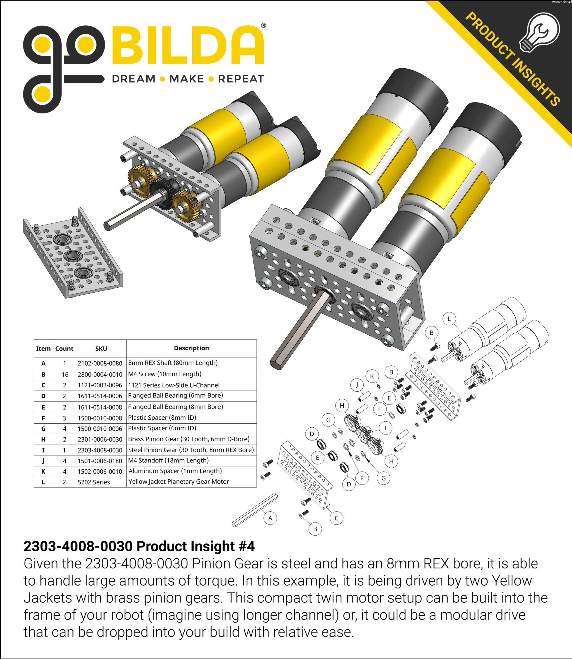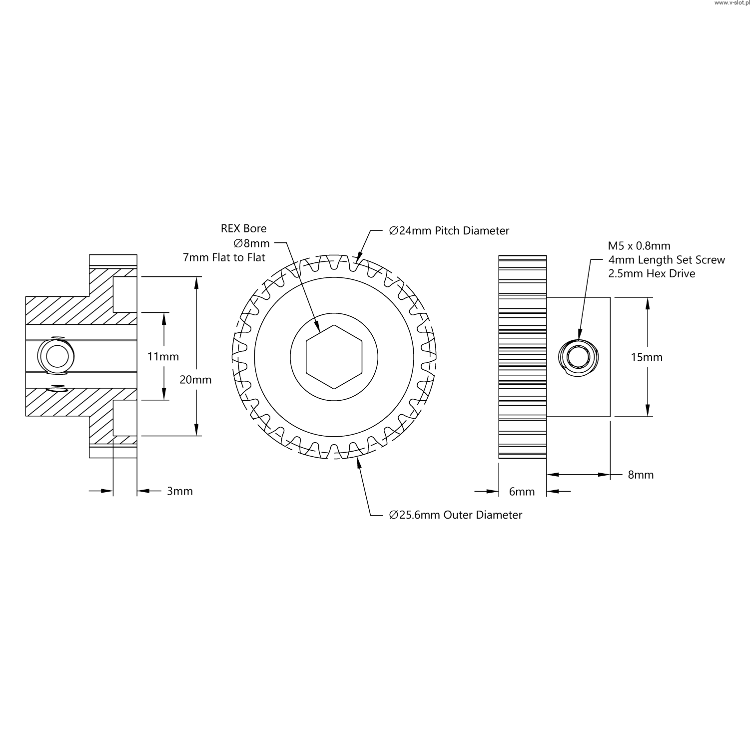 Gear wheel 2303 series ( hole REX 8mm, 30 teeth)
