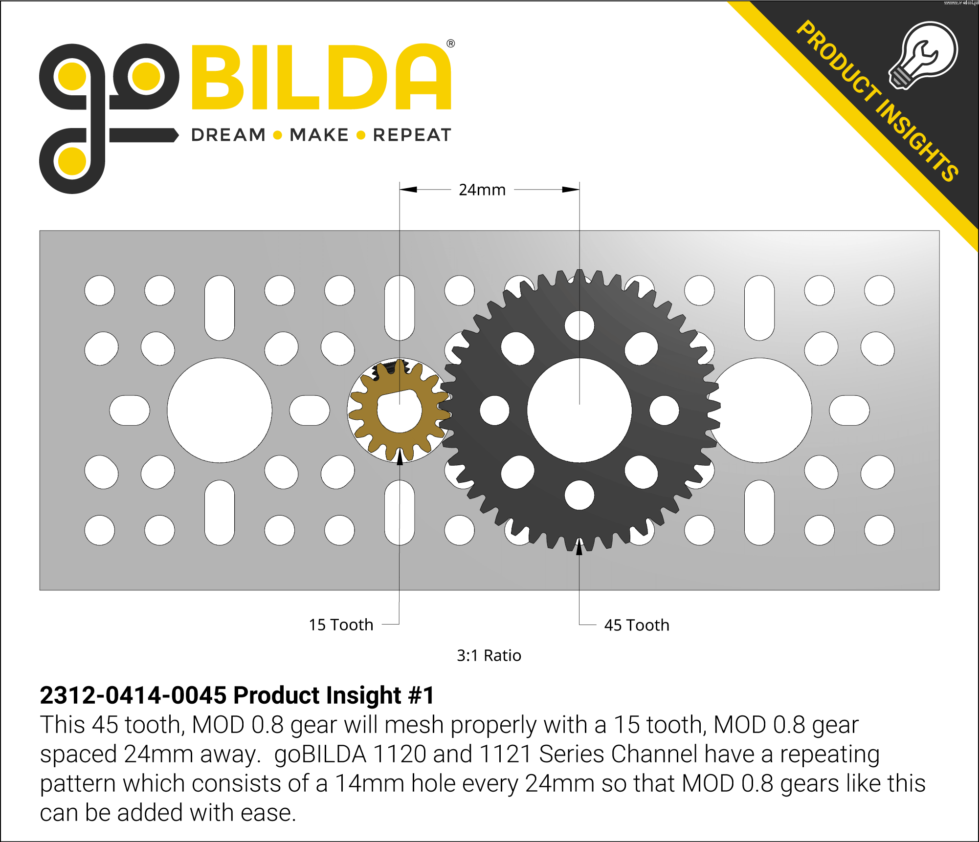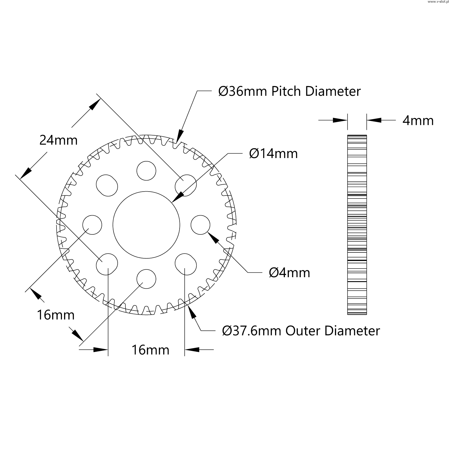 Gear wheel 45 teeth (MOD 0.8, 4 mm thickness acetal)