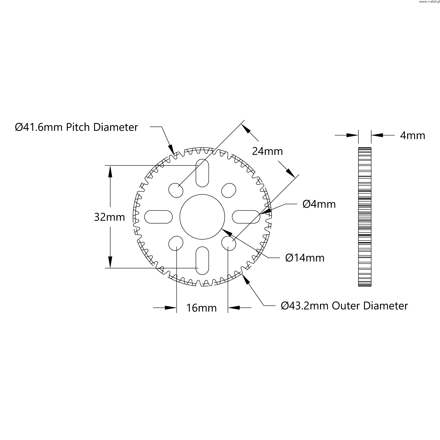 Gear wheel 52 teeth (MOD 0.8, 4 mm thickness acetal)