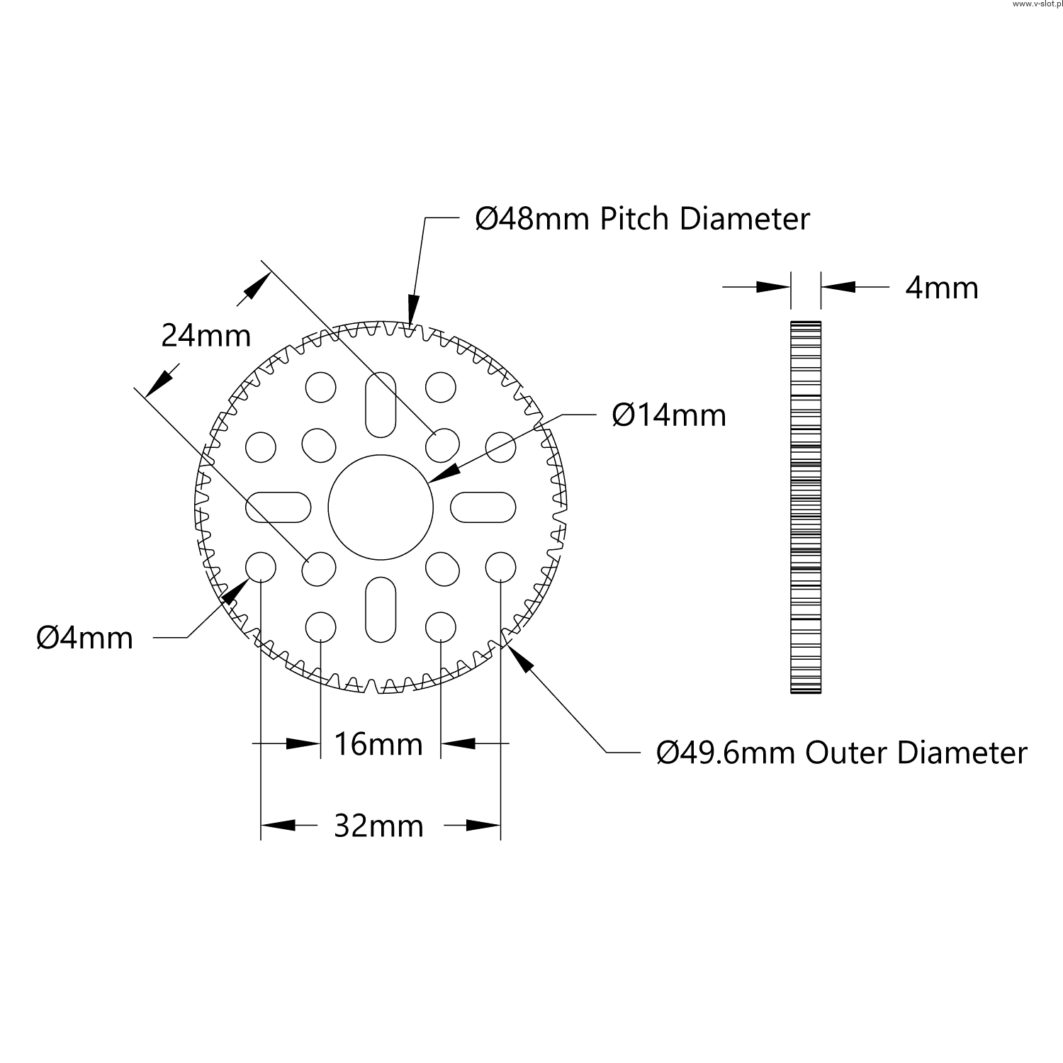 Gear wheel 60 teeth (MOD 0.8, 4 mm thickness acetal)