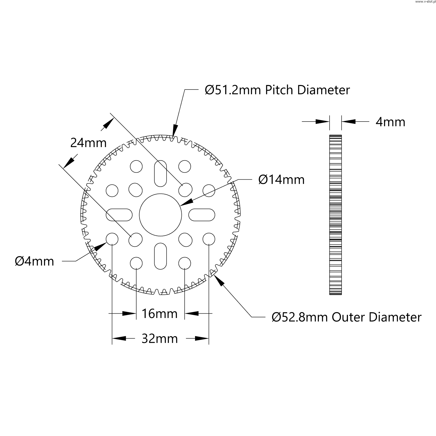 Gear wheel 64 teeth (MOD 0.8, 4 mm thickness acetal)