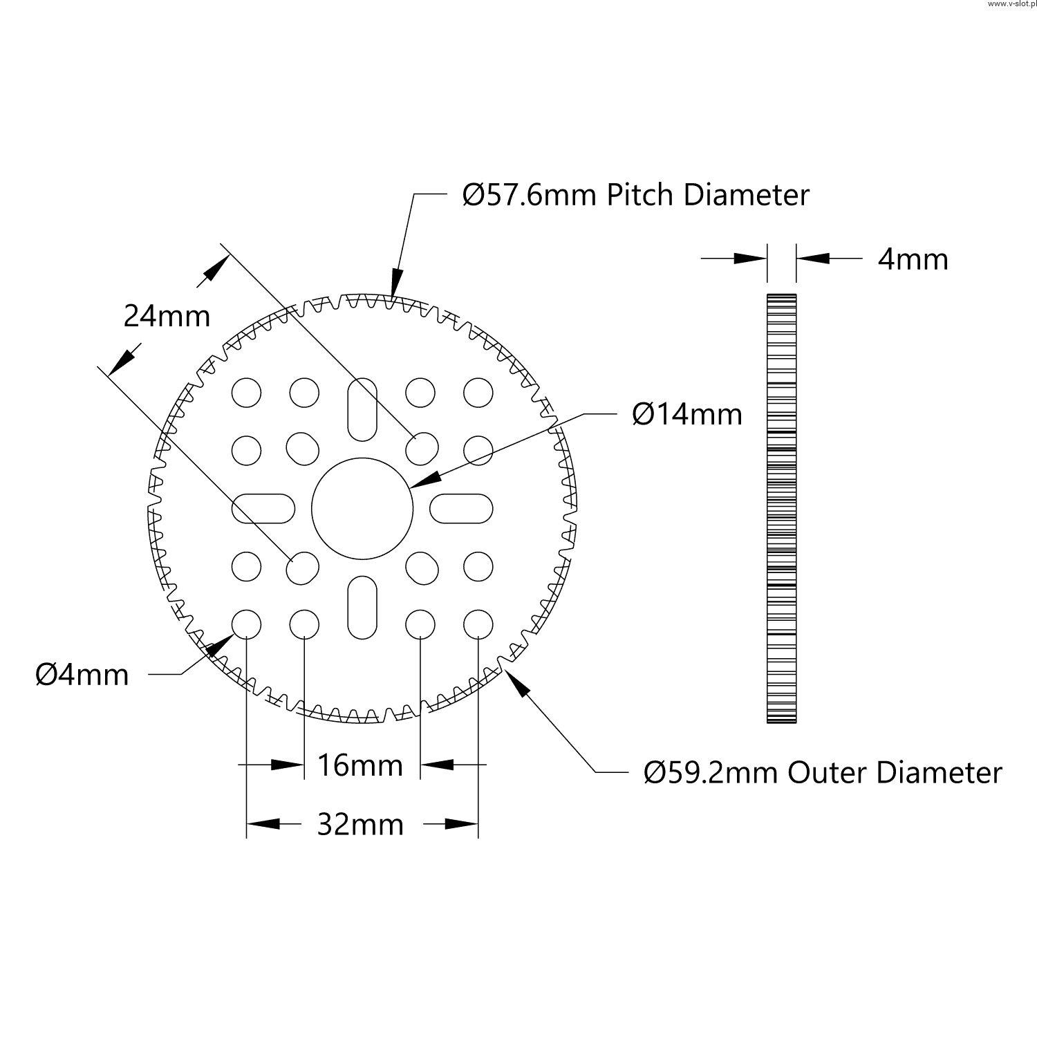 Gear wheel 72 teeth (MOD 0.8, 4 mm thickness acetal)