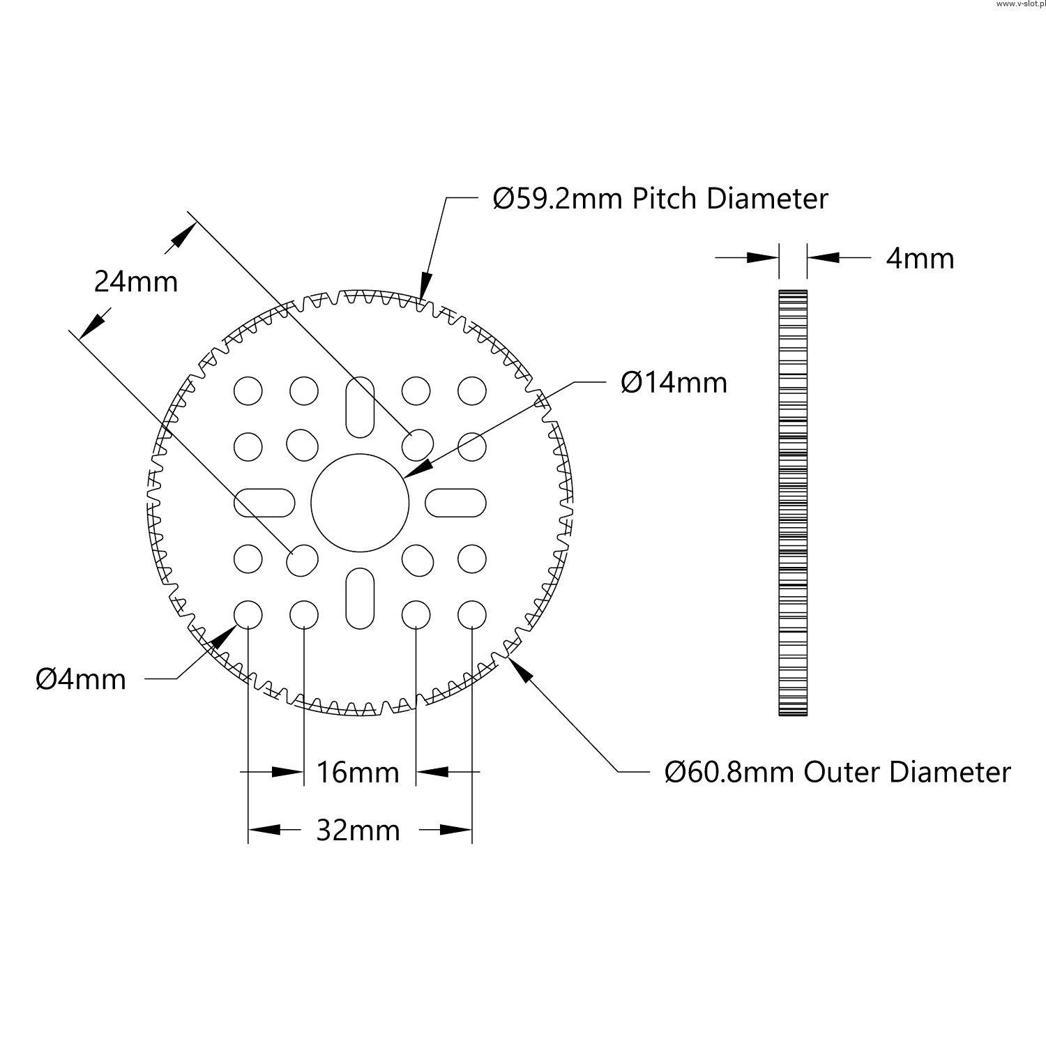Gear wheel 74 teeth (MOD 0.8, 4 mm thickness acetal)