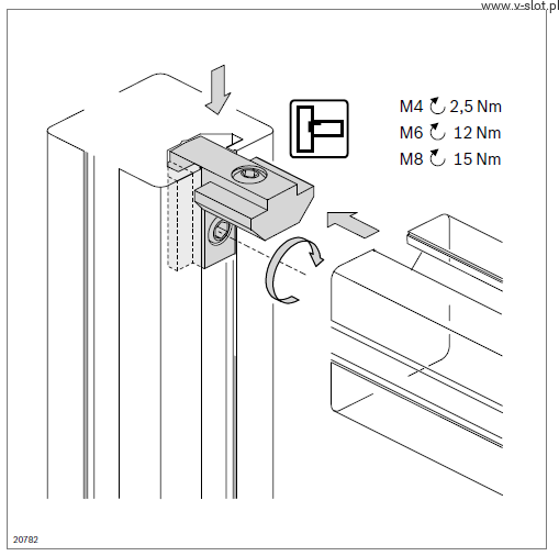Łącznik wewnętrzny do profili aluminiowych konstrukcyjnych 8