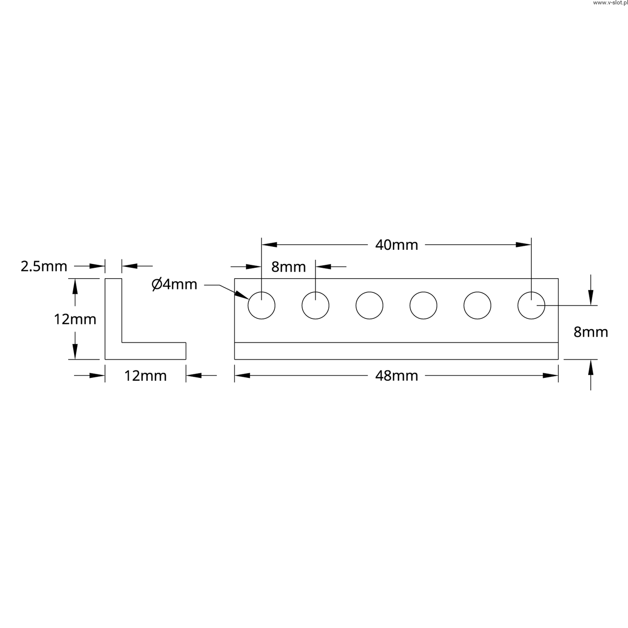 aluminum bar L-Beam (6 holes 48mm)