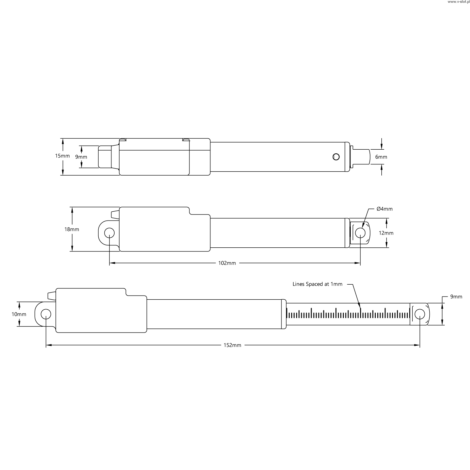 Linear servo Hitec (stroke 50 mm, 16,1 mm/s, thrust 5,2 kg)