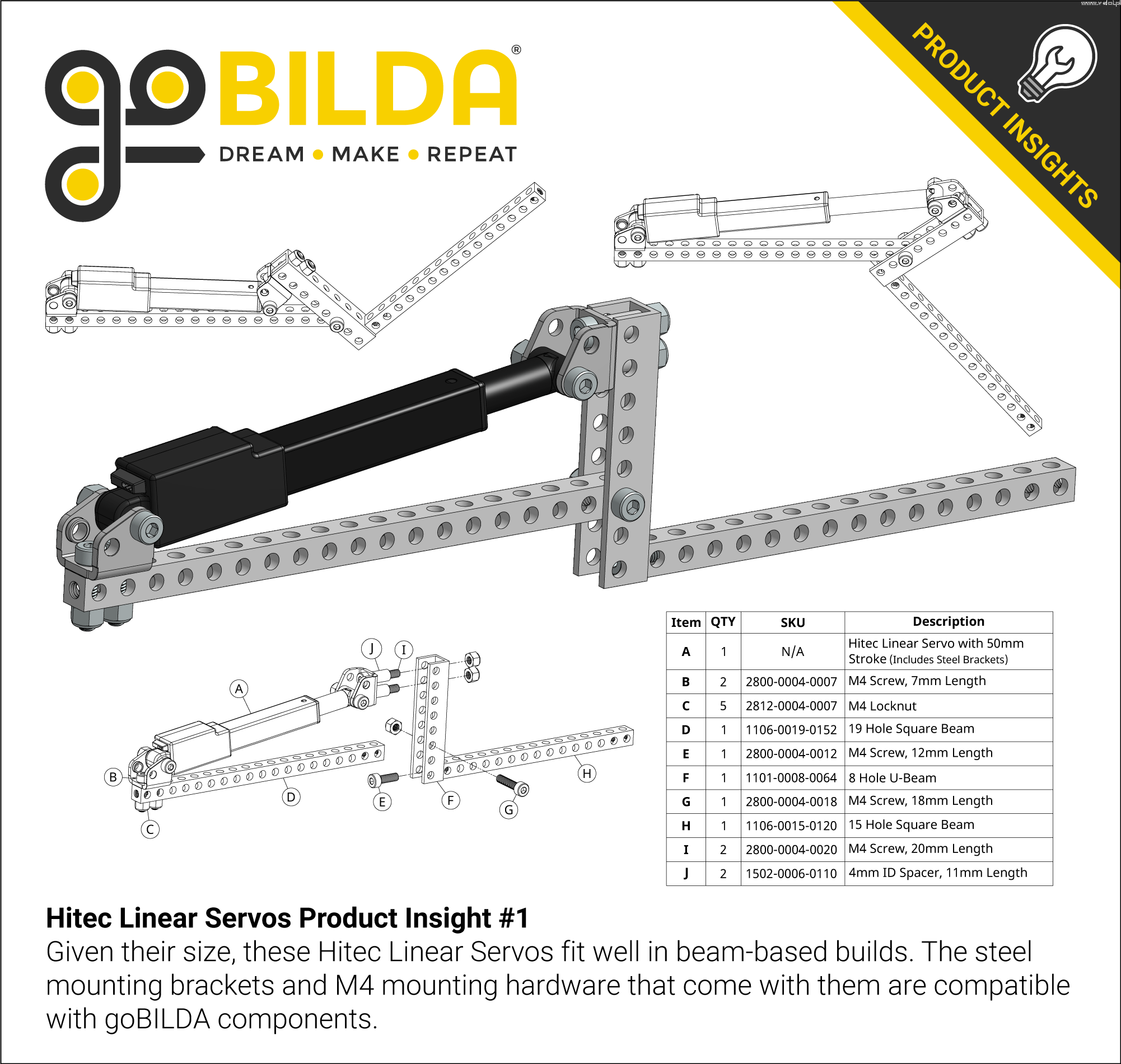 Linear servo Hitec (stroke 50 mm, 30,9 mm/s, thrust 3,1 kg)