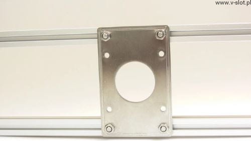 The MakerBeam mounting plate for the NEMA 17 stepper motor is made of stainless steel.