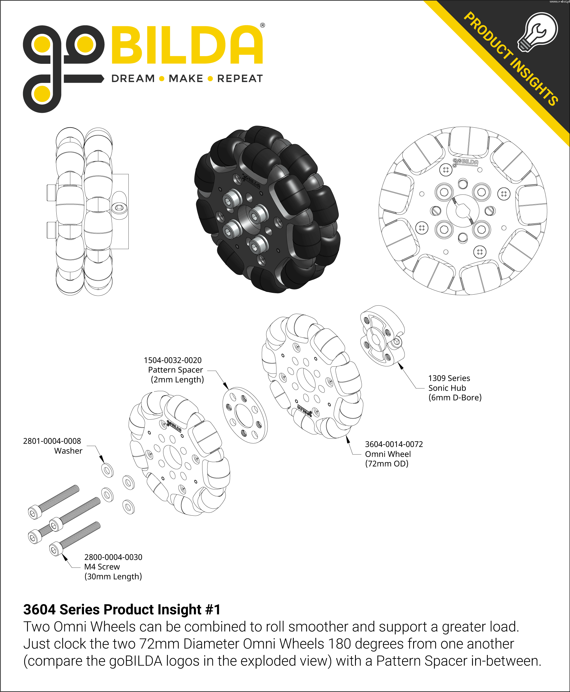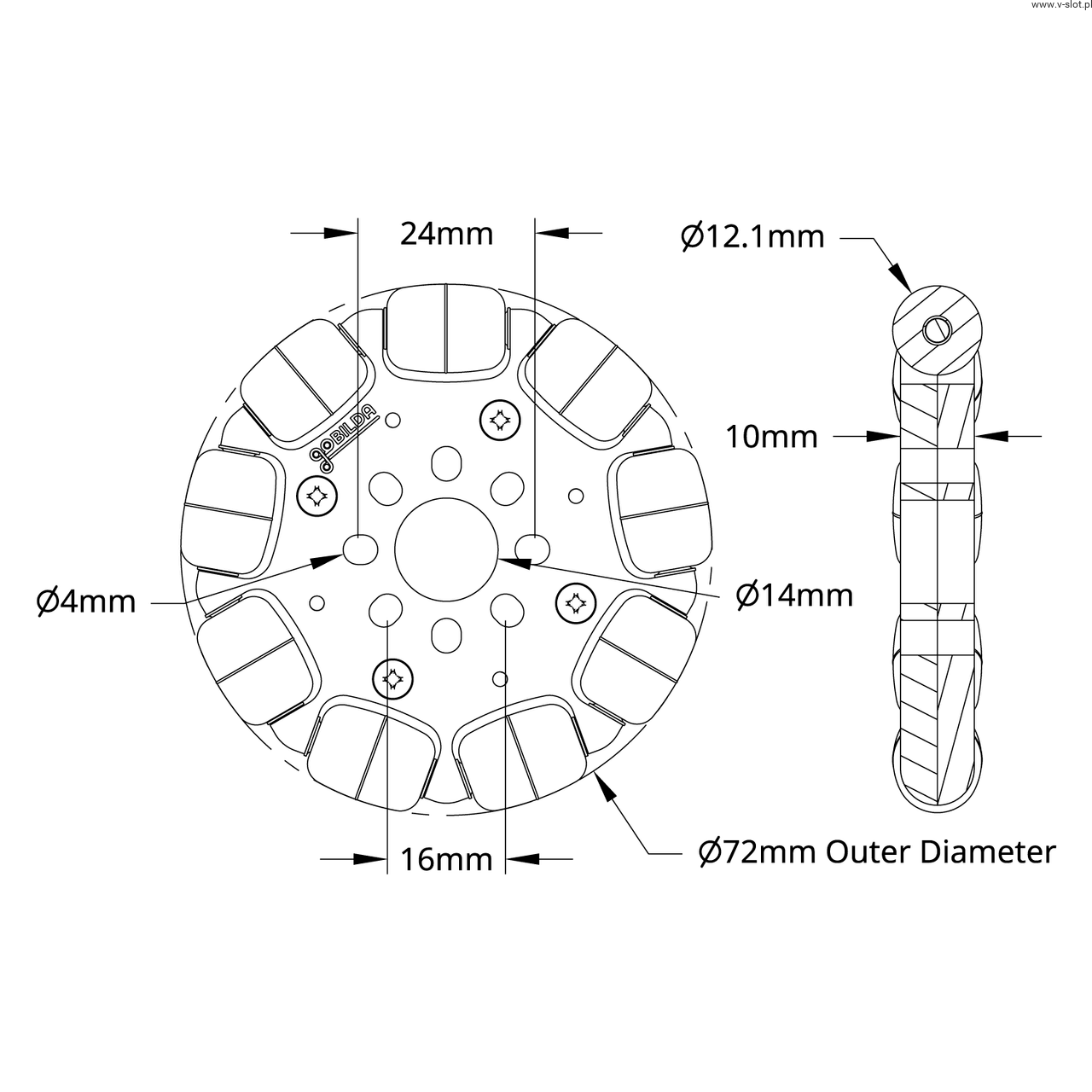Omni wheel 3604 series (14mm bore, 72mm diameter)