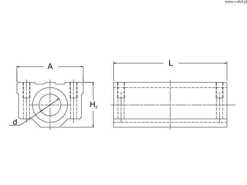 The housing has 4 mounting holes, it is made of anodized aluminum.
