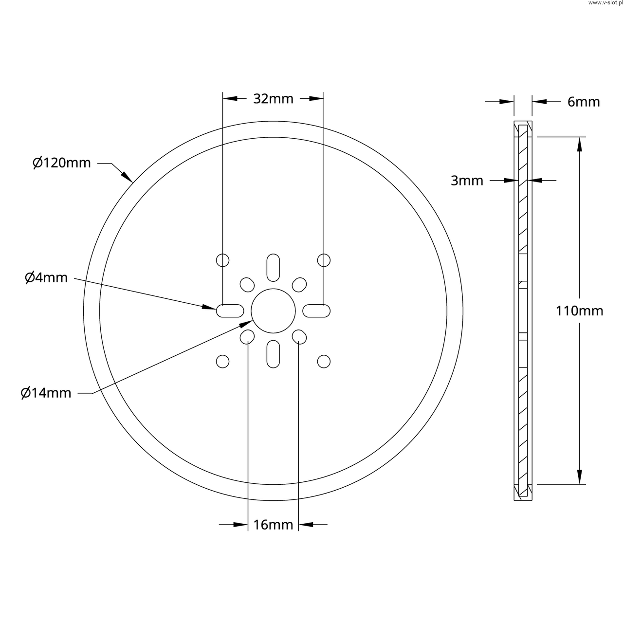 Series 3607-disc wheel (hole 14 mm, diameter 120 mm, black) - 2 pcs