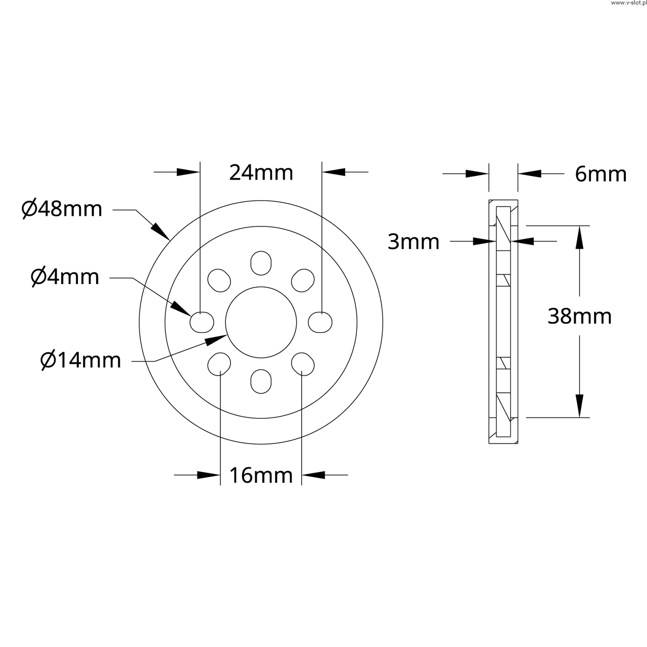 Series 3607-disc wheel (hole 14 mm, diameter 48 mm, black) - 2 pcs