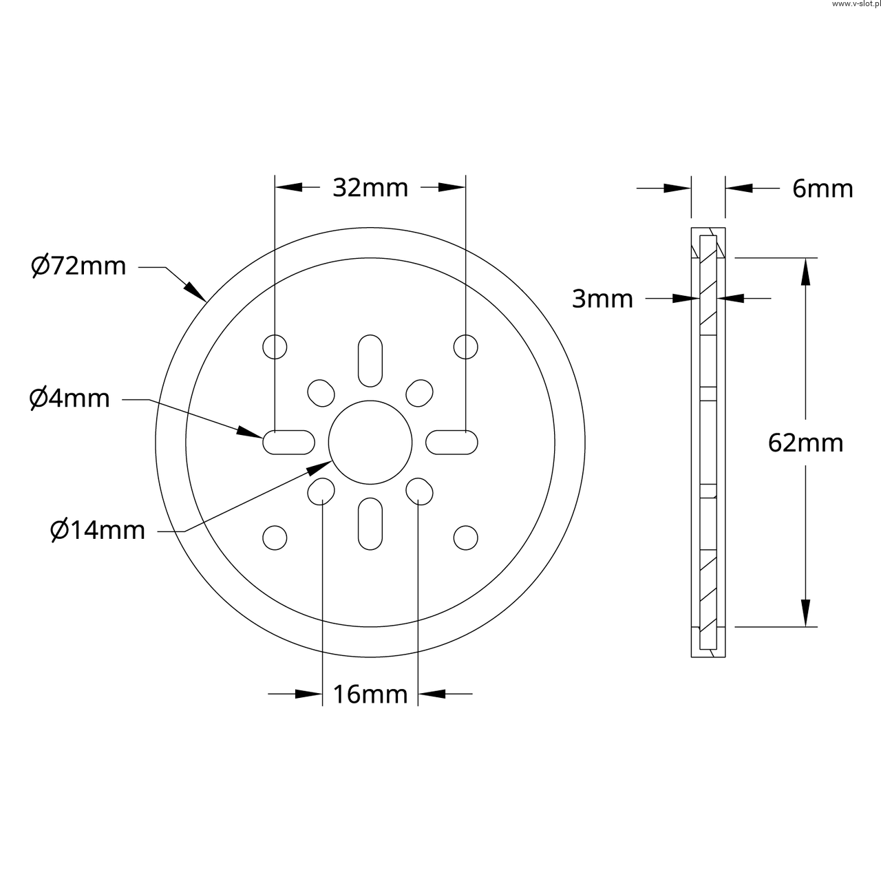 Series 3607-disc wheel (hole 14 mm, diameter 72 mm, black) - 2 pcs