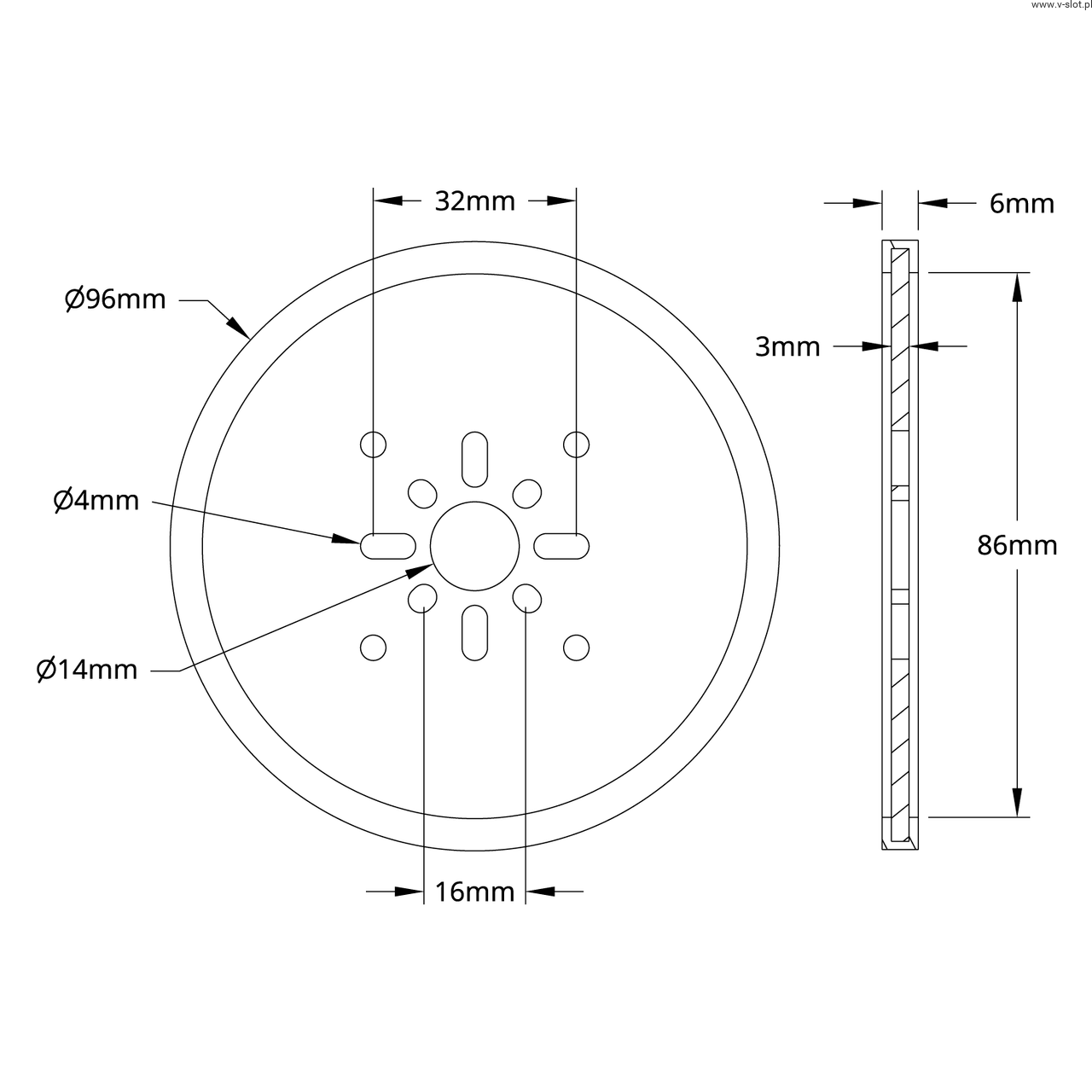 Series 3607-disc wheel (hole 14 mm, diameter 96 mm, black) - 2 pcs