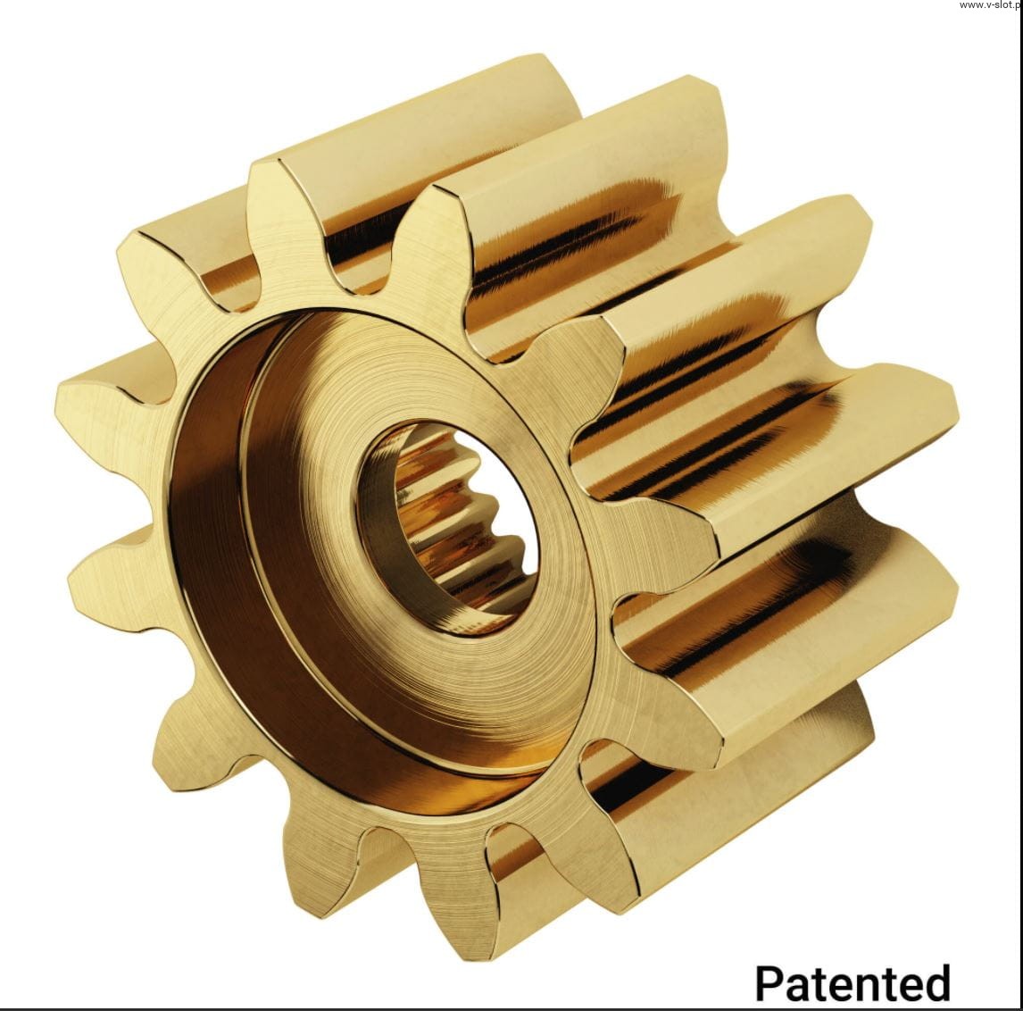 This 12-tooth servo gearbox is most commonly used to drive a 108-tooth hub, 48mm apart, for an enormous 9:1 gear ratio.