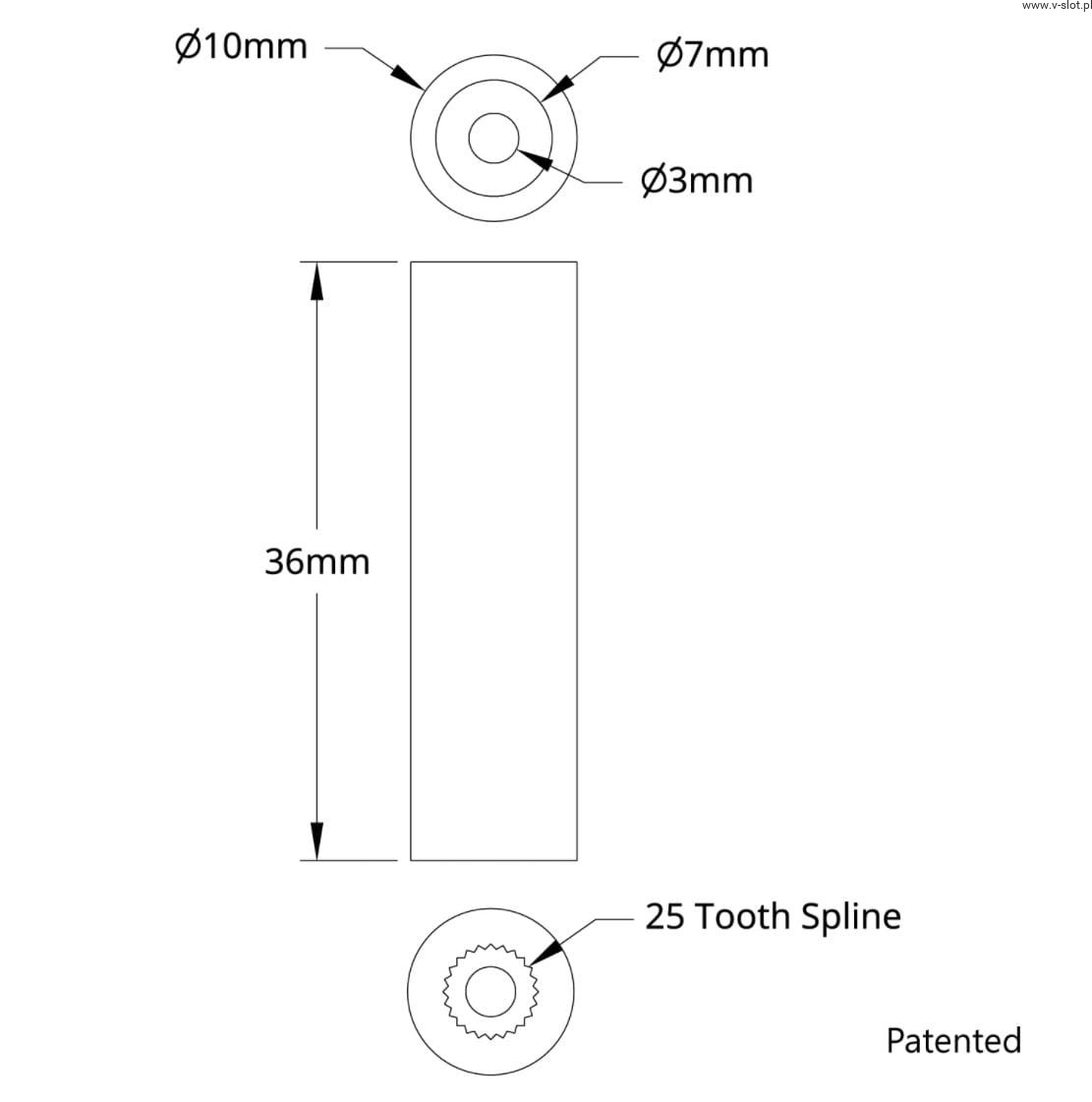 Servo shaft (25 teeth, 10mm diameter, 36mm length)
