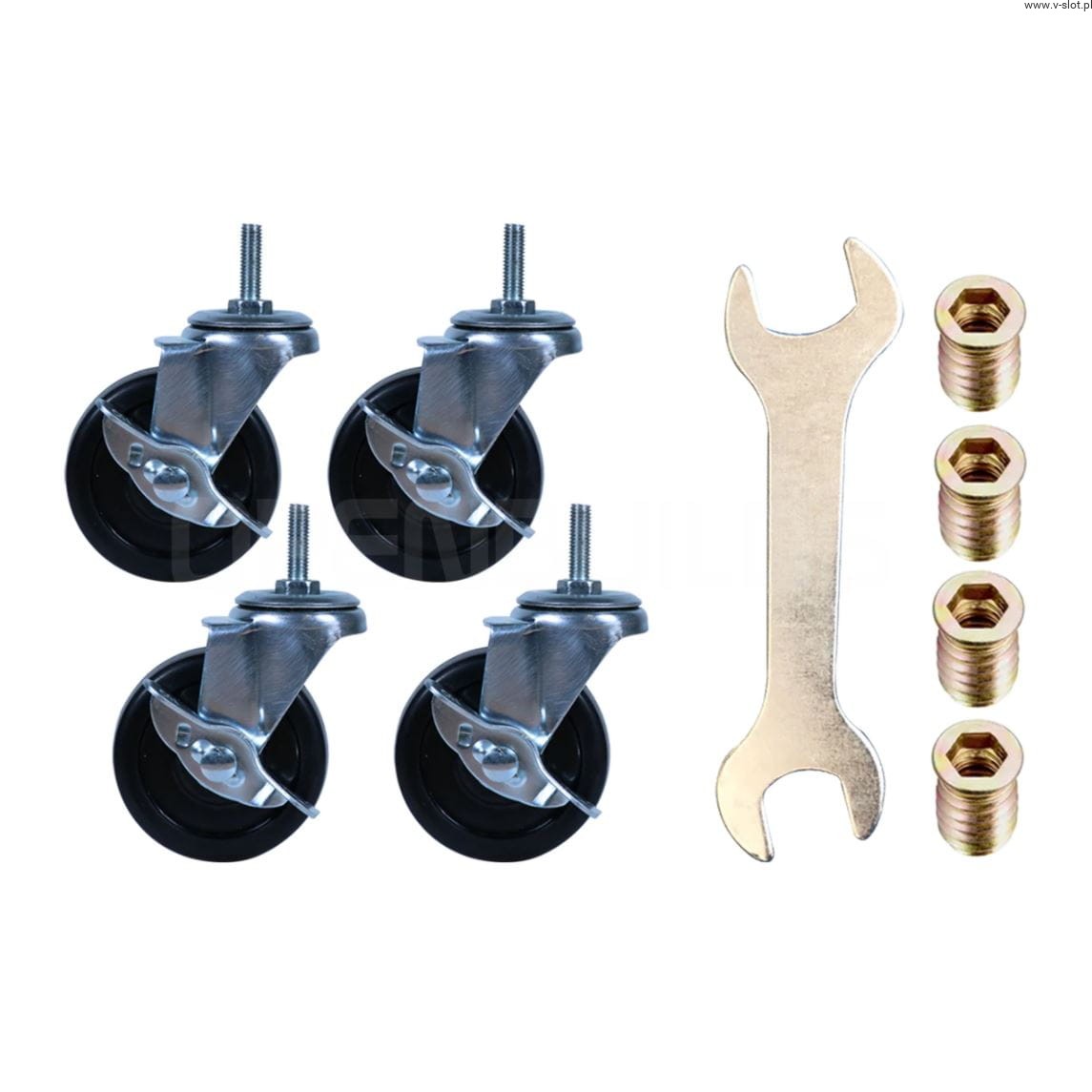 Wheels are an ideal element of equipment for many structures made of aluminum profiles. The wheel set fits perfectly with 40x40 structural aluminum profiles and 40x40 V-SLOT profiles.