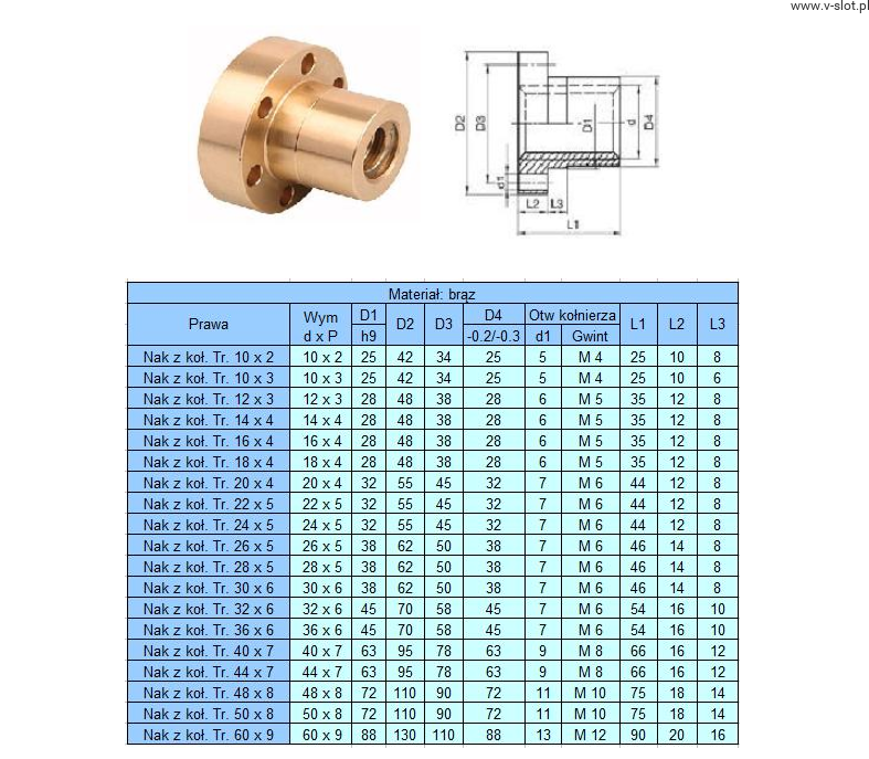 TR 30x6 trapezoidal nut with bronze collar