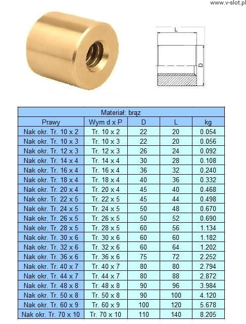 Bronze cylindrical nut, right thread