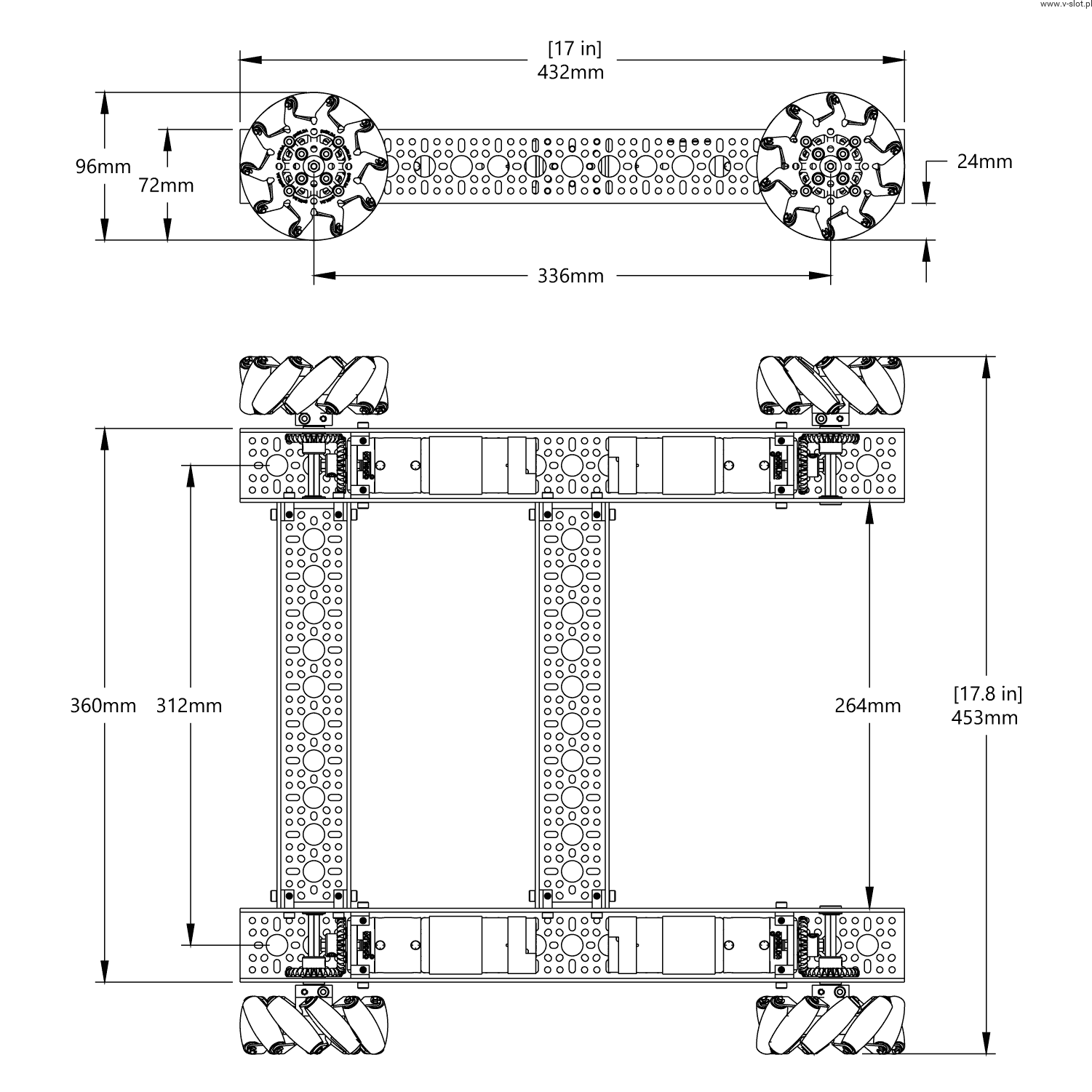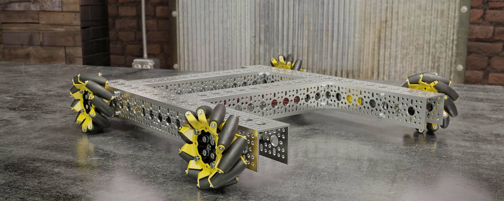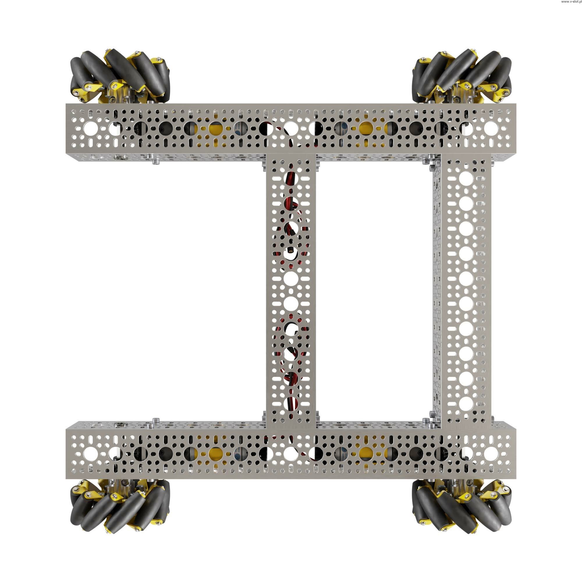 At first glance, you may be wondering where are the engines? Turn it over and you will notice the 312RPM 5203 series planetary gear motors are hidden away. Coupled with 96mm wheels, they give a theoretical speed of over 1.5m / s. These motors drive all steel gears, heavy duty hubs and ball bearings, ready for action with low friction!