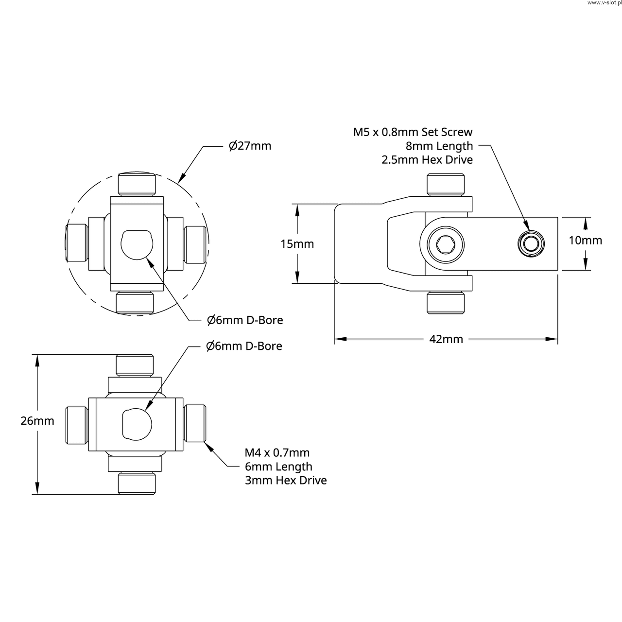 Universal joint with set screw 4003 series (D 6mm hole to D 6mm hole)