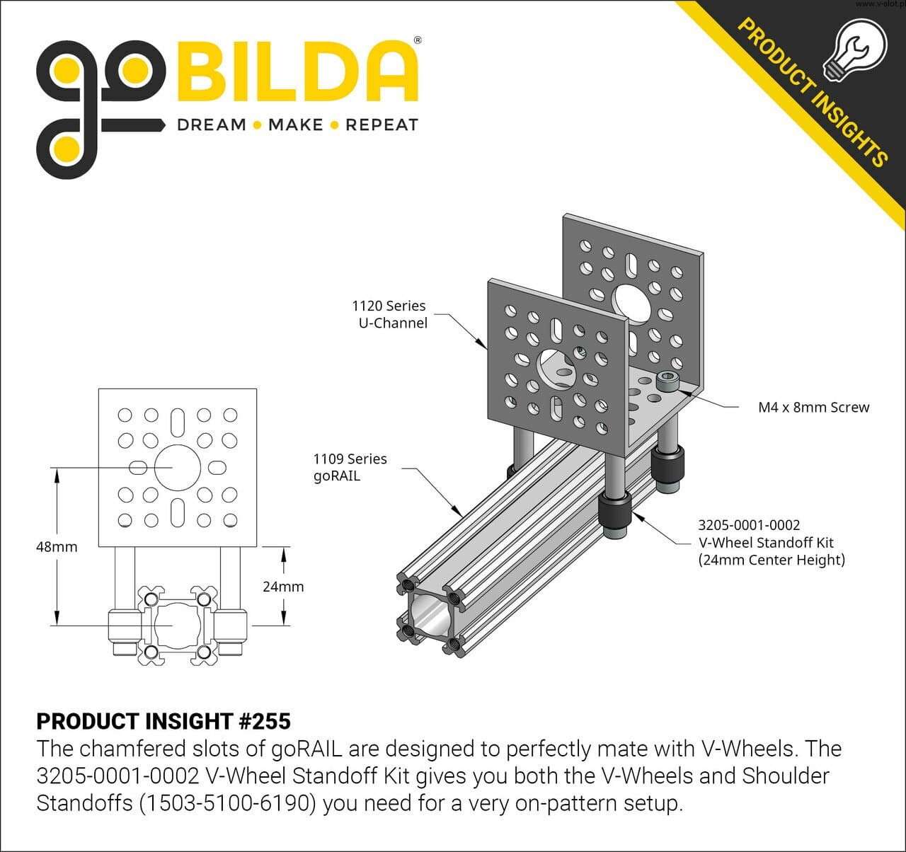 24mm height measured from base to center provides a low-profile solution for creating linear motion with goRAIL.
