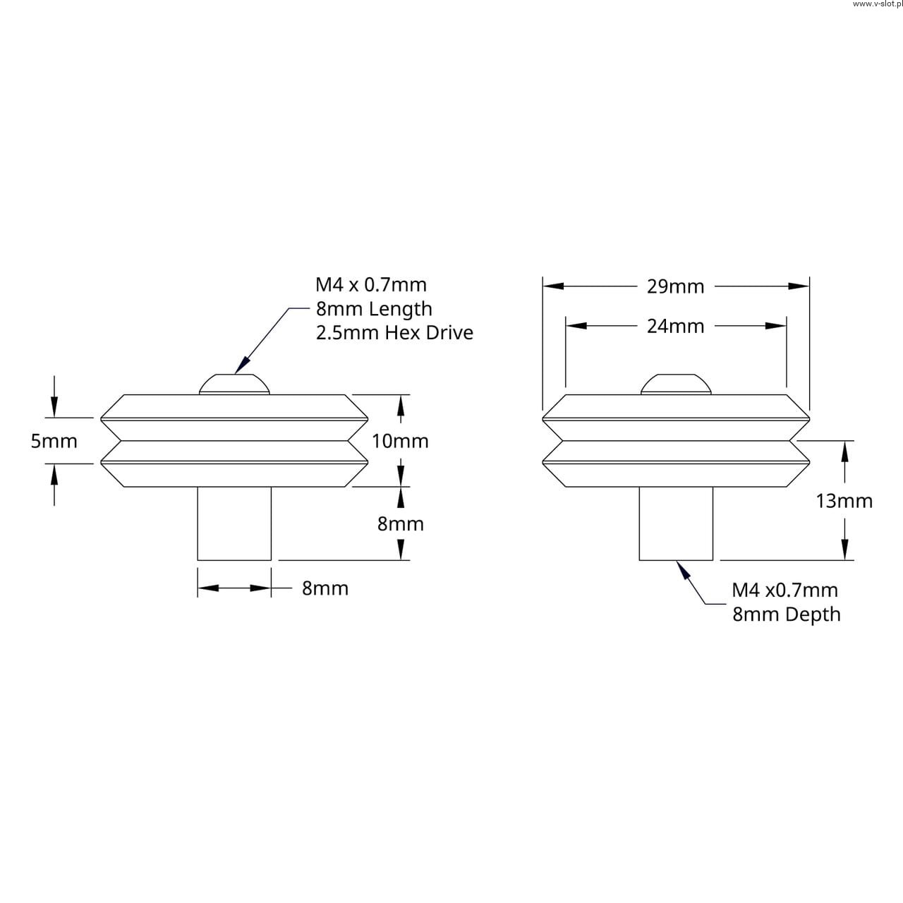 13mm base-to-center height provides a low-profile solution for creating linear motion with goRAIL or V-Guides.