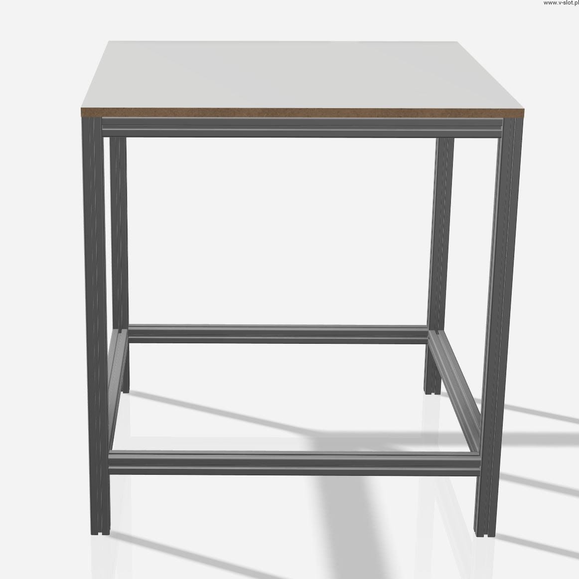 Tabletop (as an option to choose) made of 18mm thick laminated MDF board. The 40x40 aluminum profile with an 8 groove will allow the installation of additional elements such as tool holders, handles for easier table movement, lighting handles and much more.
