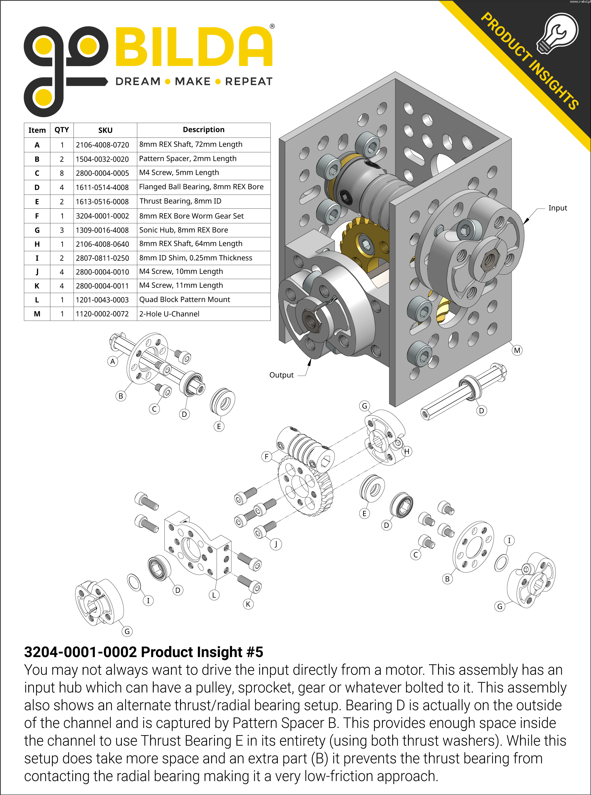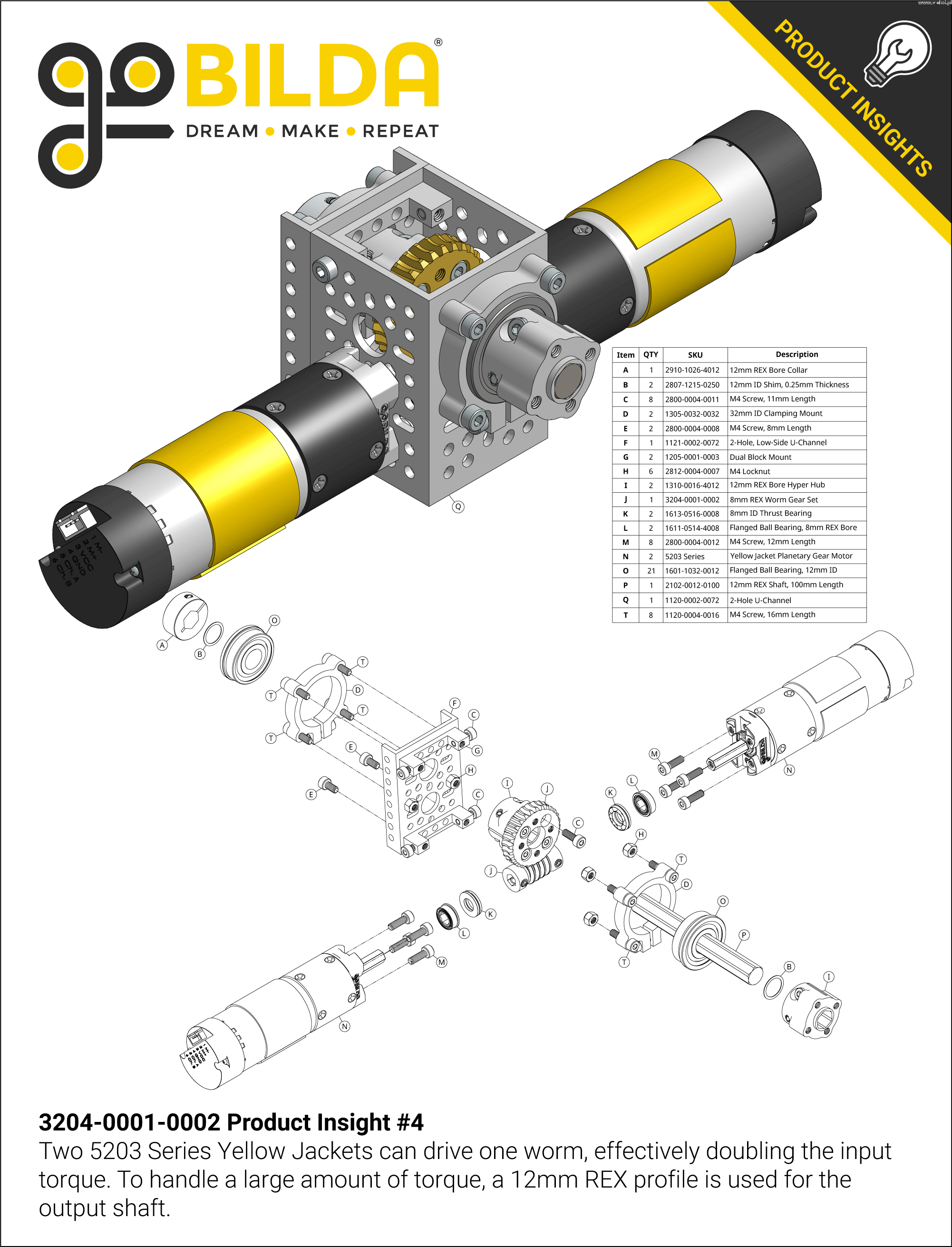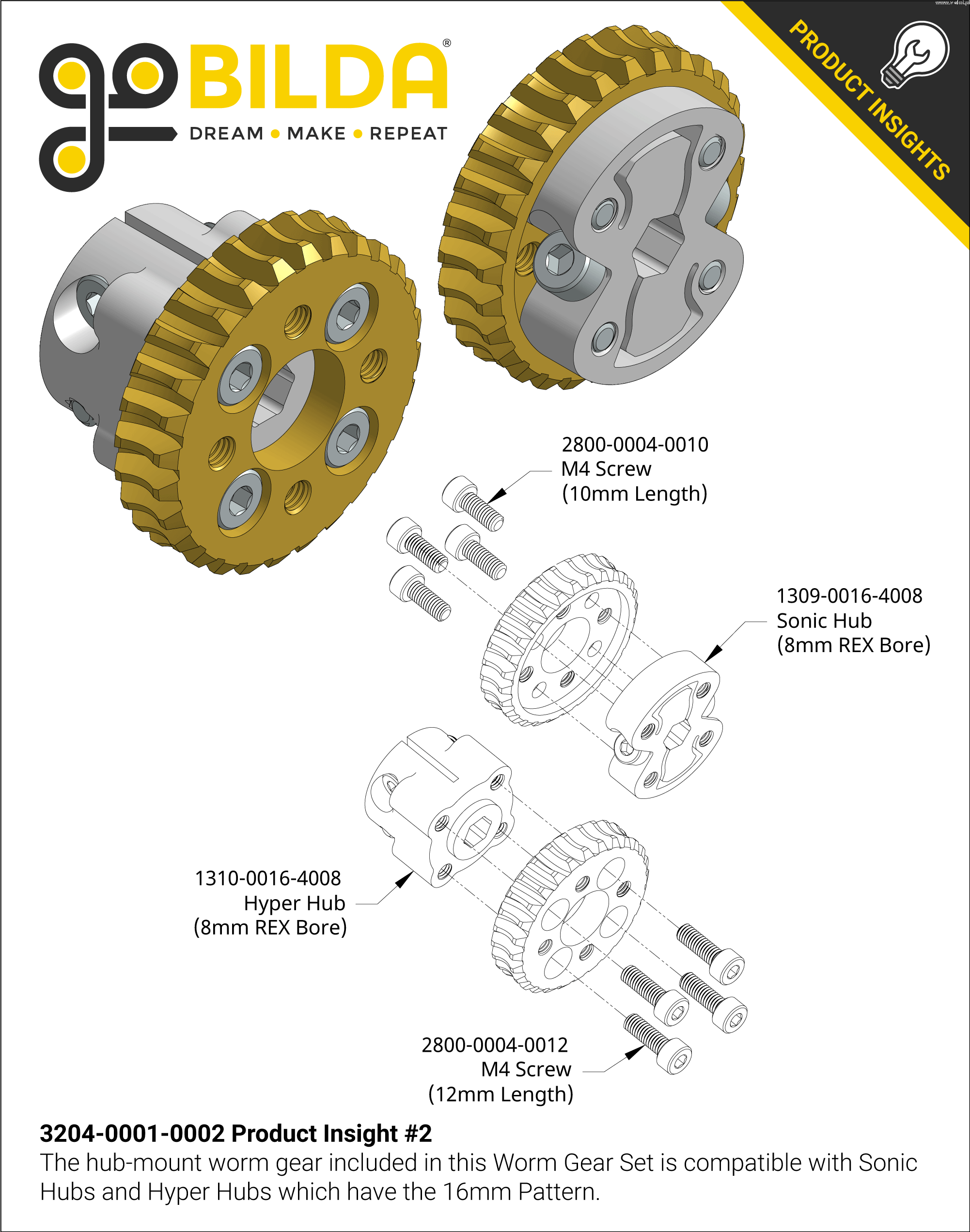 This 28: 1 ratio worm gear kit is the perfect way to slow down and increase torque! Worm gear sets are also a popular choice in non-reversible applications. While this kit can be used outside of the 1120 series channel, the sprocket sizes conform to an internal width of 43mm.