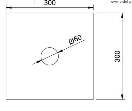 - Holes: M5 partially drilled for mounting under the trolley, central hole fi 60mm