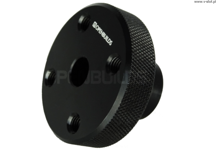 You can use this knob to manually adjust the machine positions. For example, you can jump close to the starting point and then use the dial to set the bit on the material. It has 4 threaded holes (M5) that allow you to add an aluminium distance and screws to create a handle.