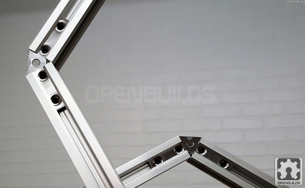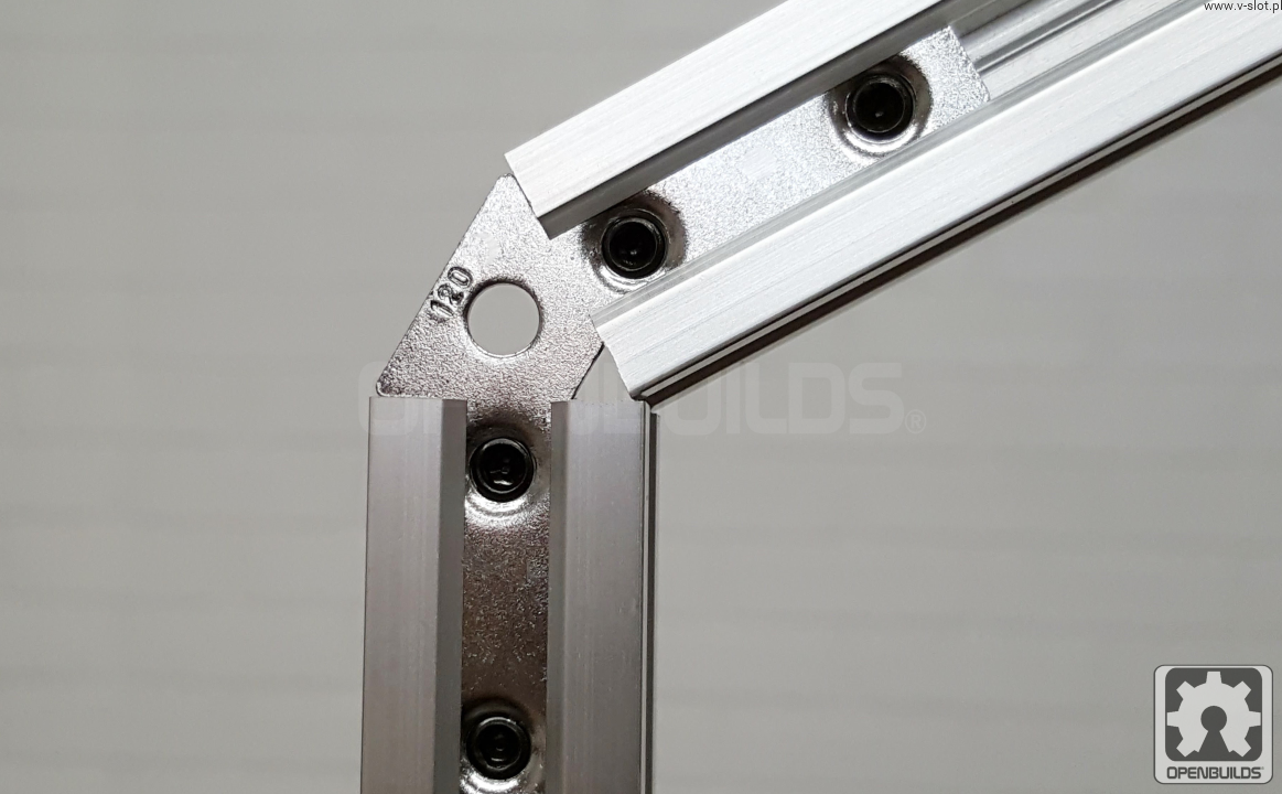 V-Slot aluminium profile connecting elements at 120 degrees.