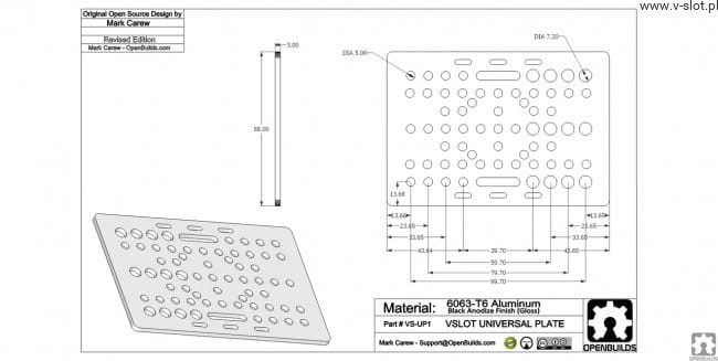 This tile is designed to fit all standard sizes of V-Slot aluminium profiles.